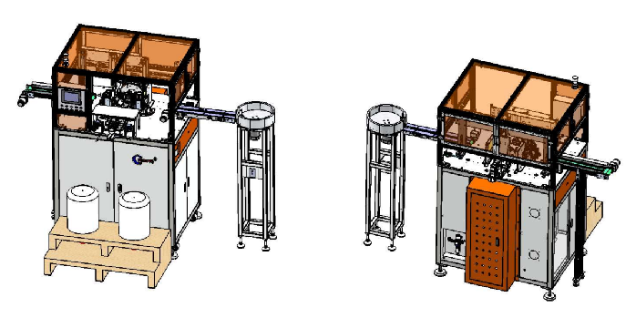 2.上磁芯結(jié)構(gòu)屬于三軸聯(lián)動(dòng)結(jié)合,上磁芯,轉(zhuǎn)運(yùn)單邊繞好的線圈,下料三組為一體,磁芯夾為兩邊對夾保證了雙邊受力均勻不會(huì)破磁芯